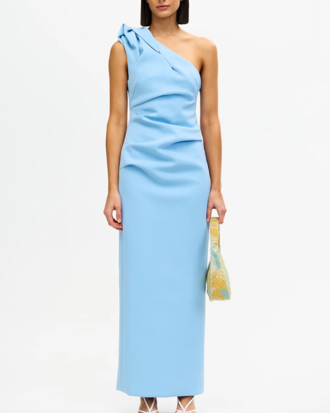 A study in sculptural elegance, the Bracora Maxi Dress in Bluebell captures the imagination with its modern, architectural lines. Crafted from bonded woven fabrication, this statement piece features subtle one-shoulder detailing and a defined, elongated silhouette-perfect for event dressing. Fully lined for a seamless fit, the design is complete with a discreet left-hand invisible zipper.
