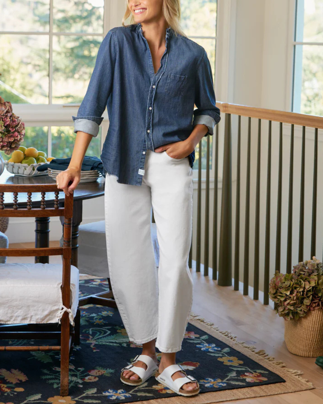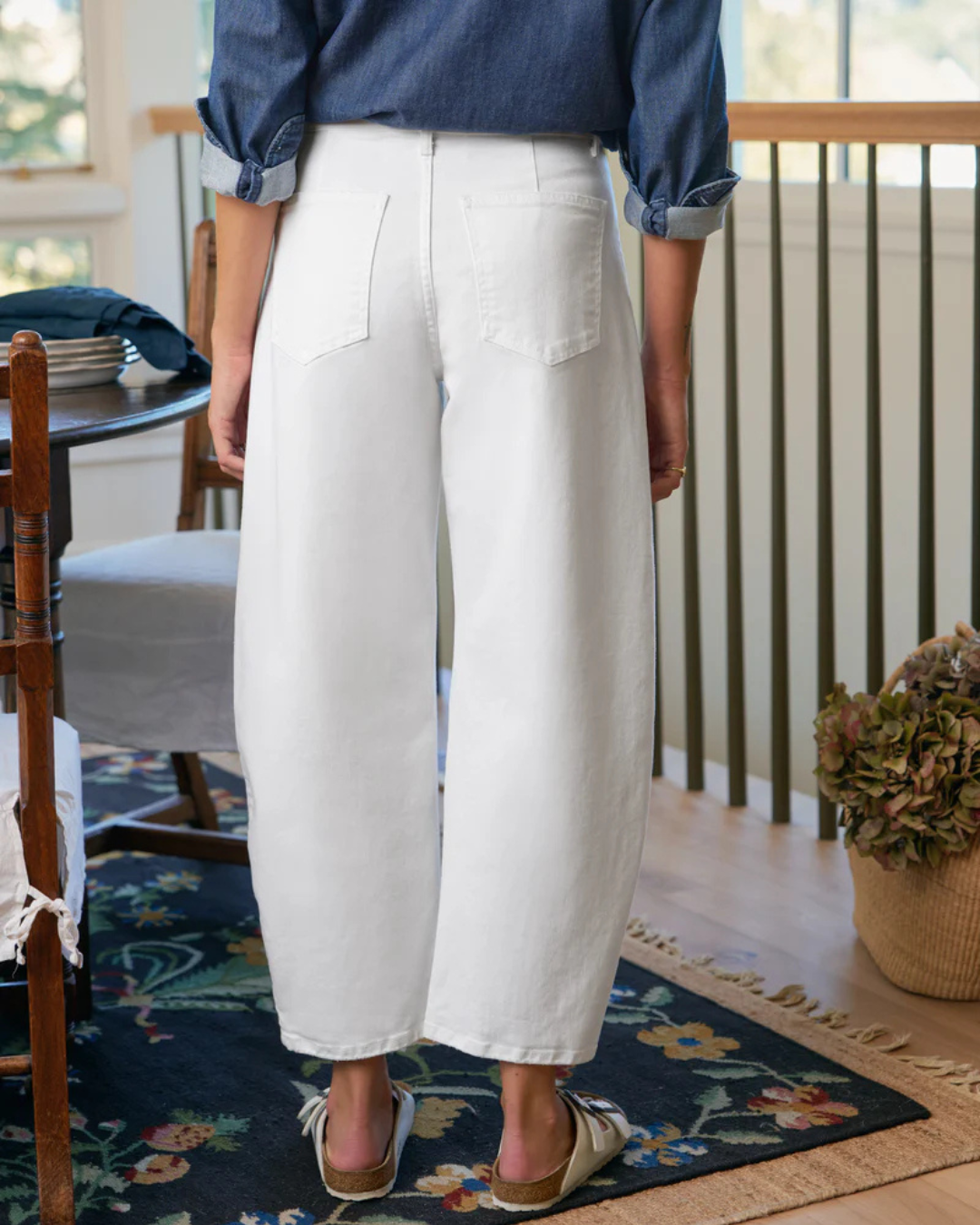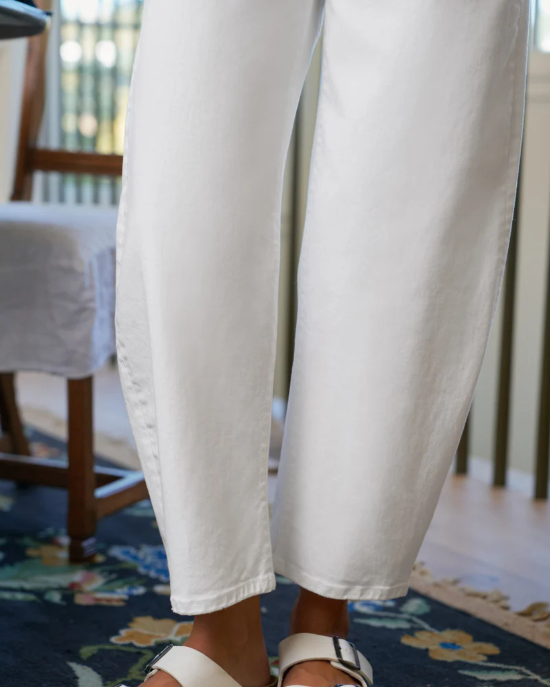 Brennan is the barrel jean we all want. Made in our new California Vintage Denim, this softly structured, incredibly comfortable jean plays with proportion in a way that looks and feels fresh. A gently curved “barrel” leg hits your ankle and beautifully accentuates your waist.