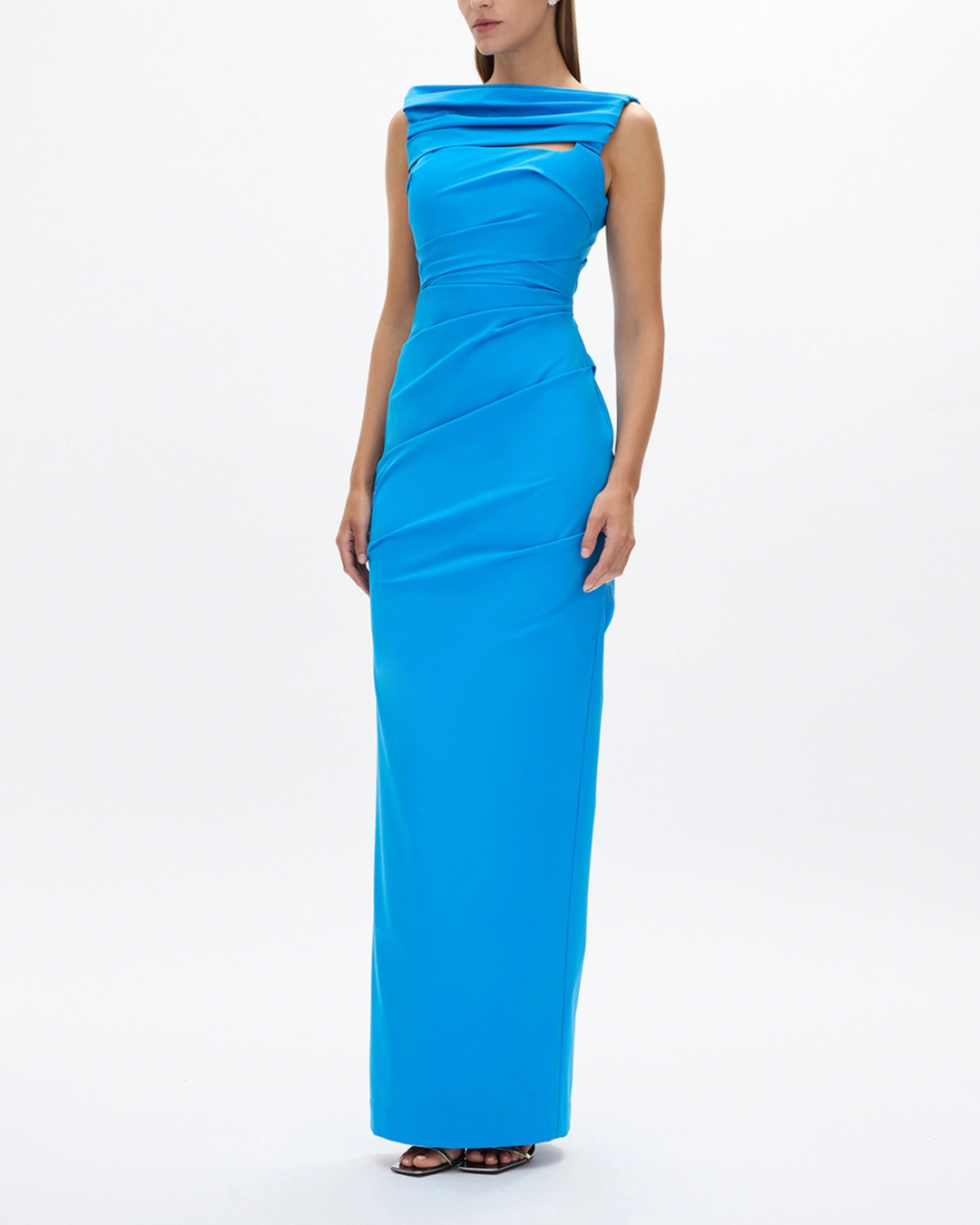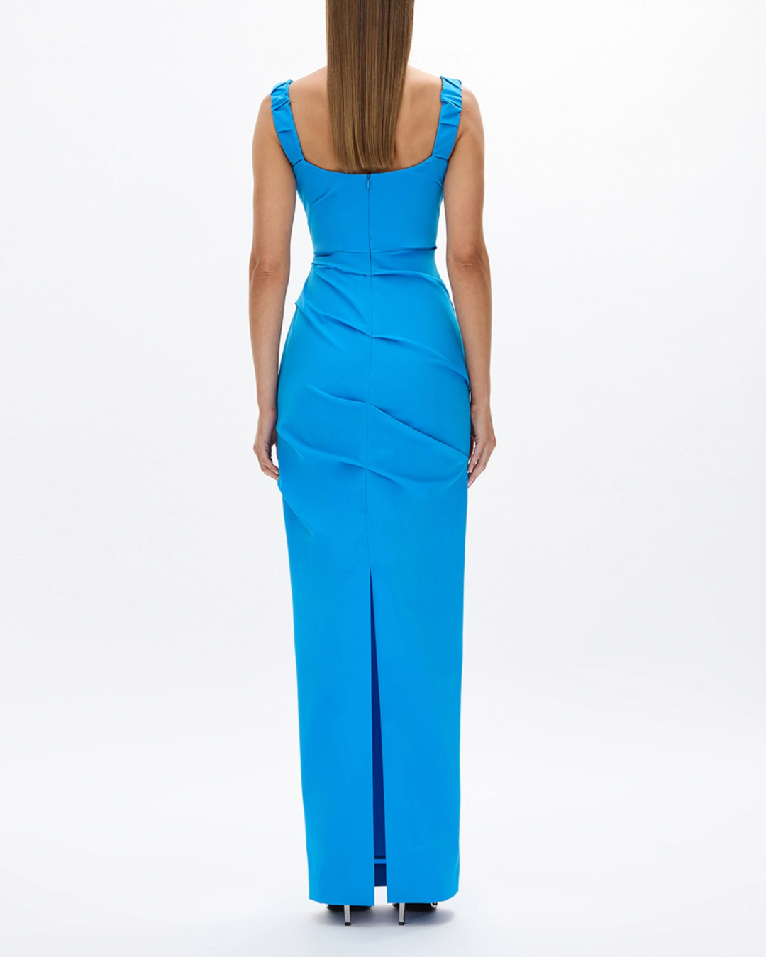 Exude timeless elegance with the Camille Gown, designed to make a lasting impression. Featuring exquisite hand-draped detailing, it offers a sophisticated and graceful look. Crafted with an internal corset, it provides structure and enhances your silhouette for a flattering fit. Perfect for your most special occasions.