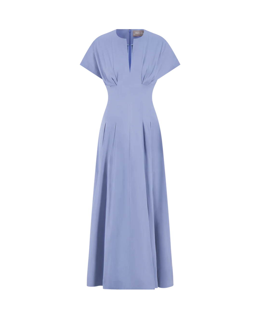 Crafted in crisp 100% cotton poplin, this midi dress features a pleat-tailored bodice, cape cap sleeves, a slender plunge neckline, and an elegant full skirt. Smocked in the back for stylish ease of wear, this dress is a wink to the traditional. Effortlessly dresses up with heels or down with boots for cocktail flair or everyday polish.