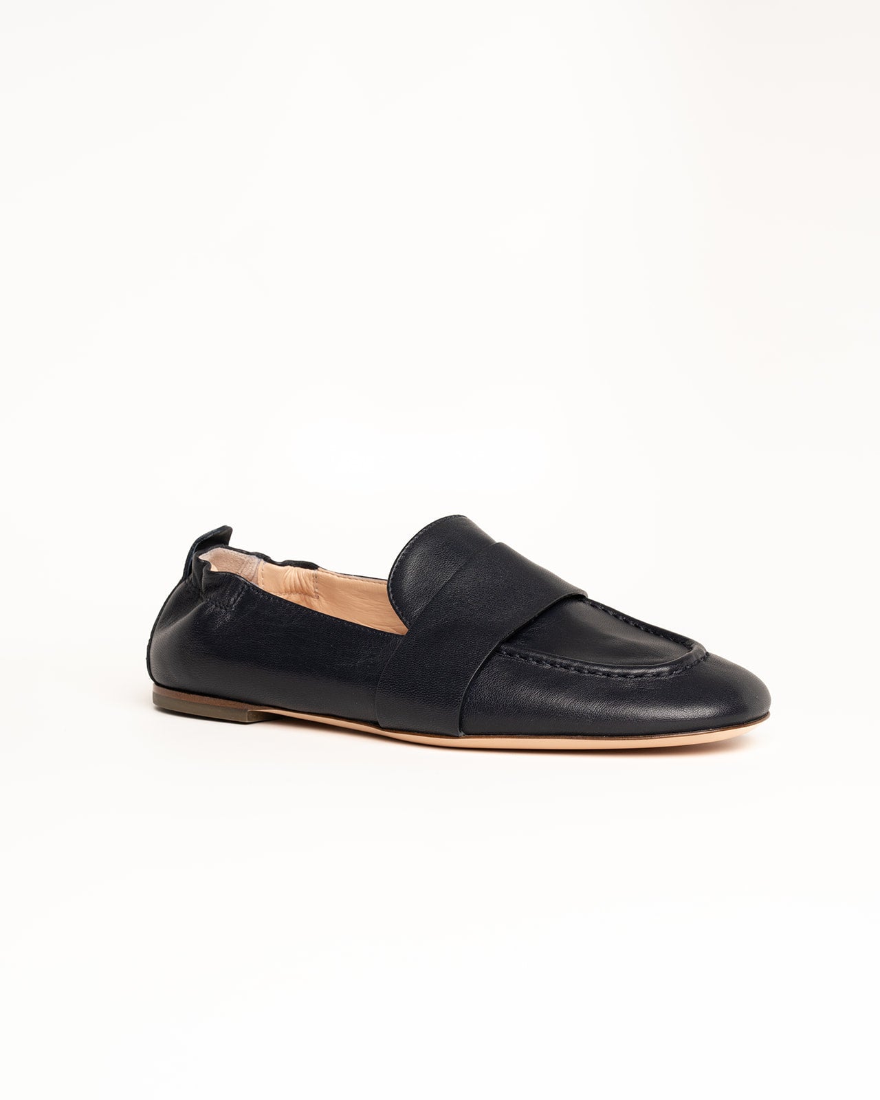 The CRISTIANA moccasin is as soft as a glove, constructed using the sacchetto technique—an artisanal shoemaking method that ensures exceptional softness, flexibility, and comfort. A model inspired by classic men's footwear, but softened by the colors and the elastic detail at the heel. The fit is regular, soft, and practical.