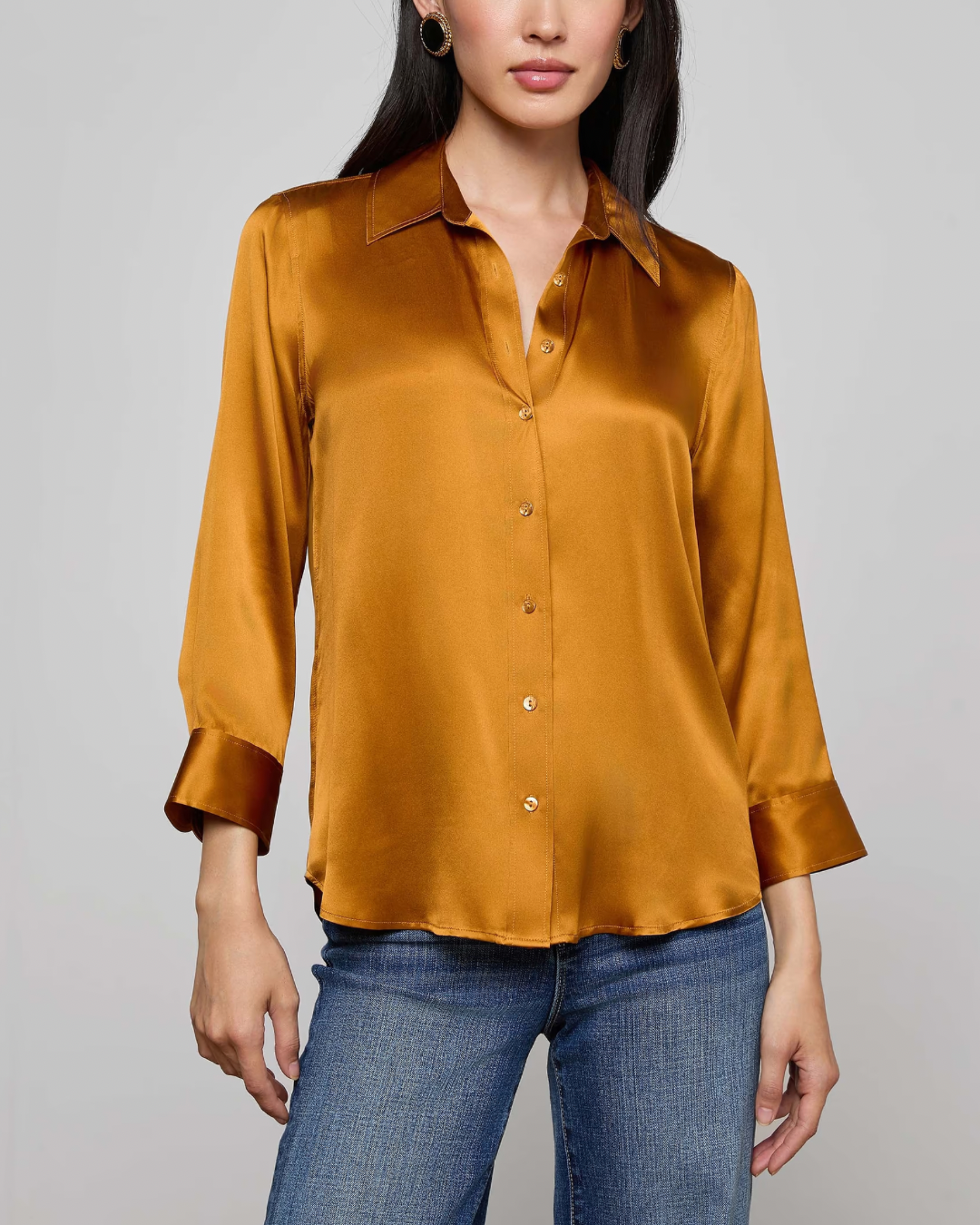 The iconic silk button-down that belongs in every wardrobe. This all-time bestseller is constructed with three-quarter length sleeves designed to perfectly showcase your jewelry—no sleeve rolling required. Our signature Dani blouse is back in a beautiful mustard hue.