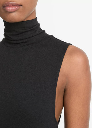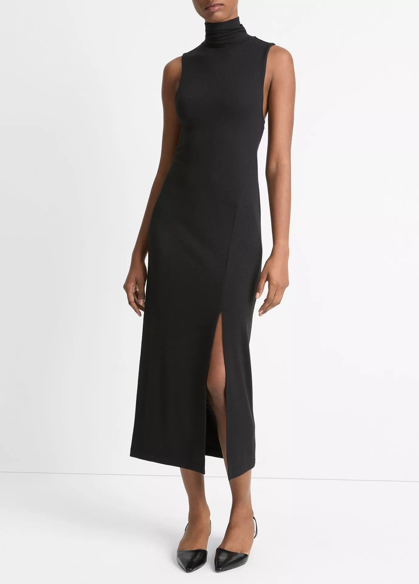 SLEEVELESS TURTLENECK DRESS W/ SIDE SLIT