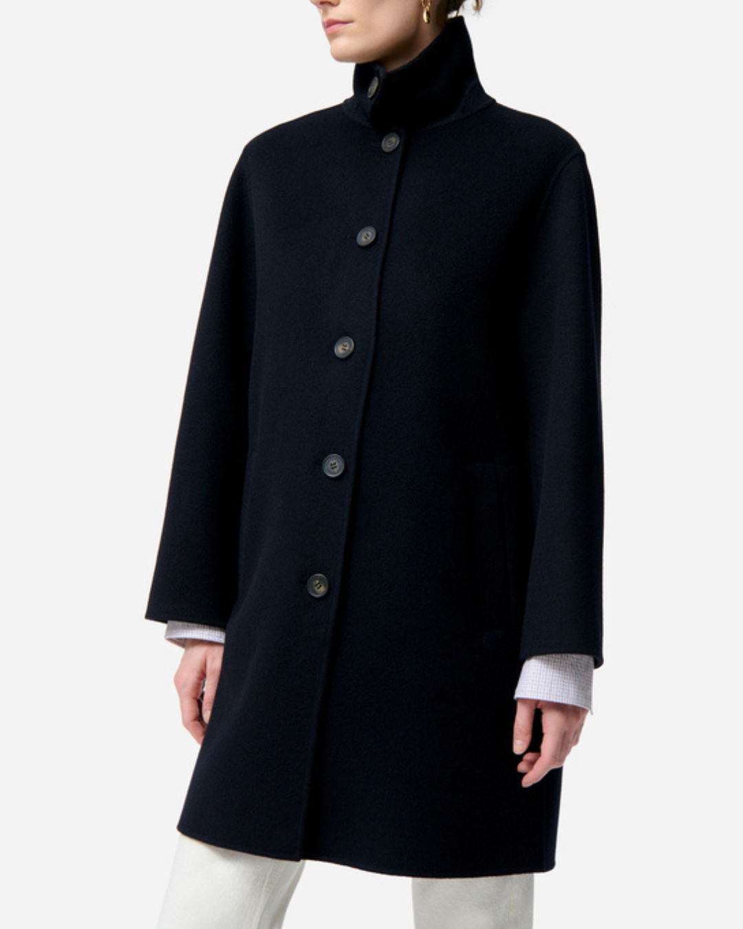 The Fabian Coat combines timeless elegance with everyday wearability. Its mid-length, double-sided design offers a straight cut that flatters every silhouette, while the classic shirt collar adds a refined touch. Featuring front button closure, side piped pockets, and a back vent for ease of movement, this coat is perfect for stylish layering during cooler seasons.