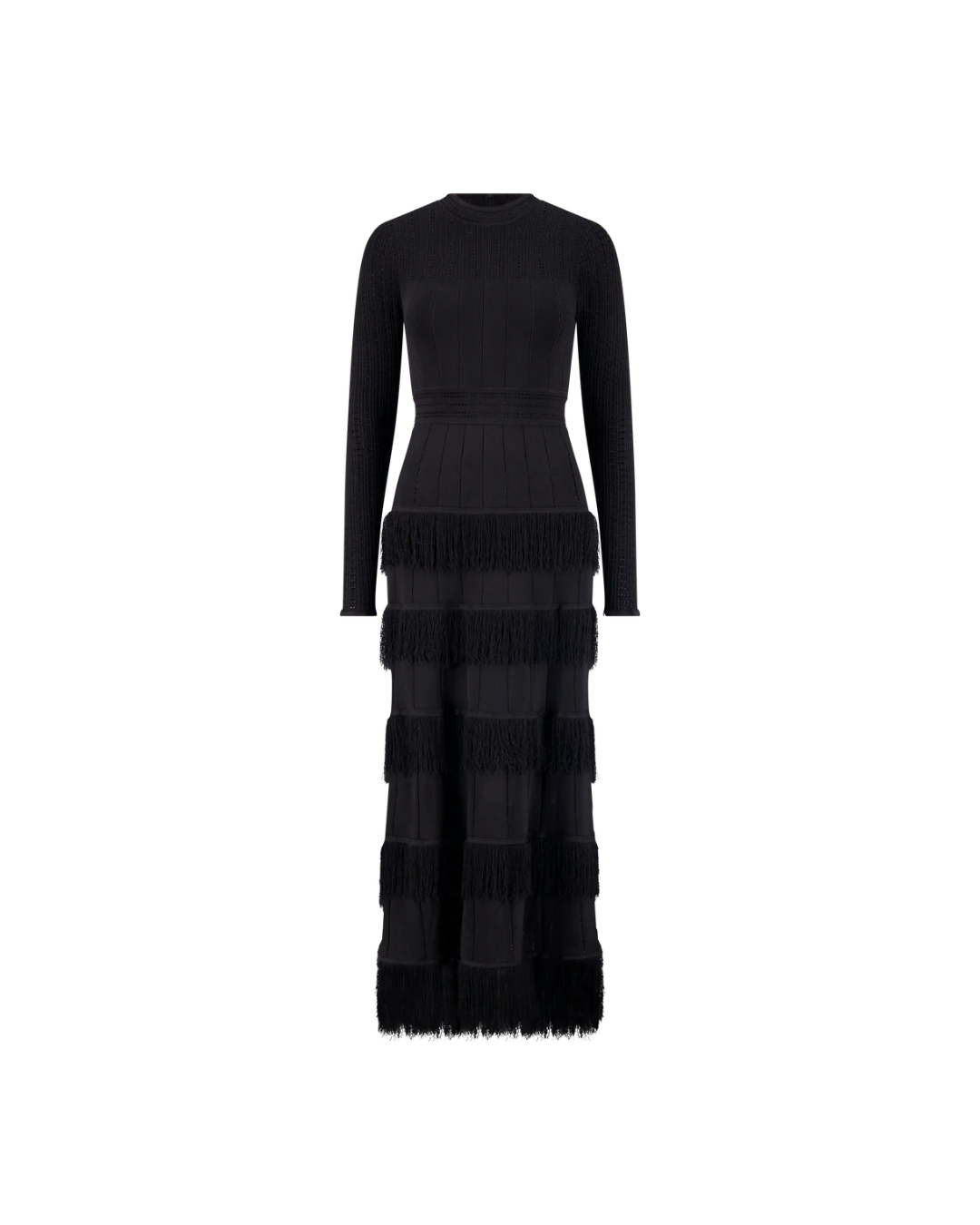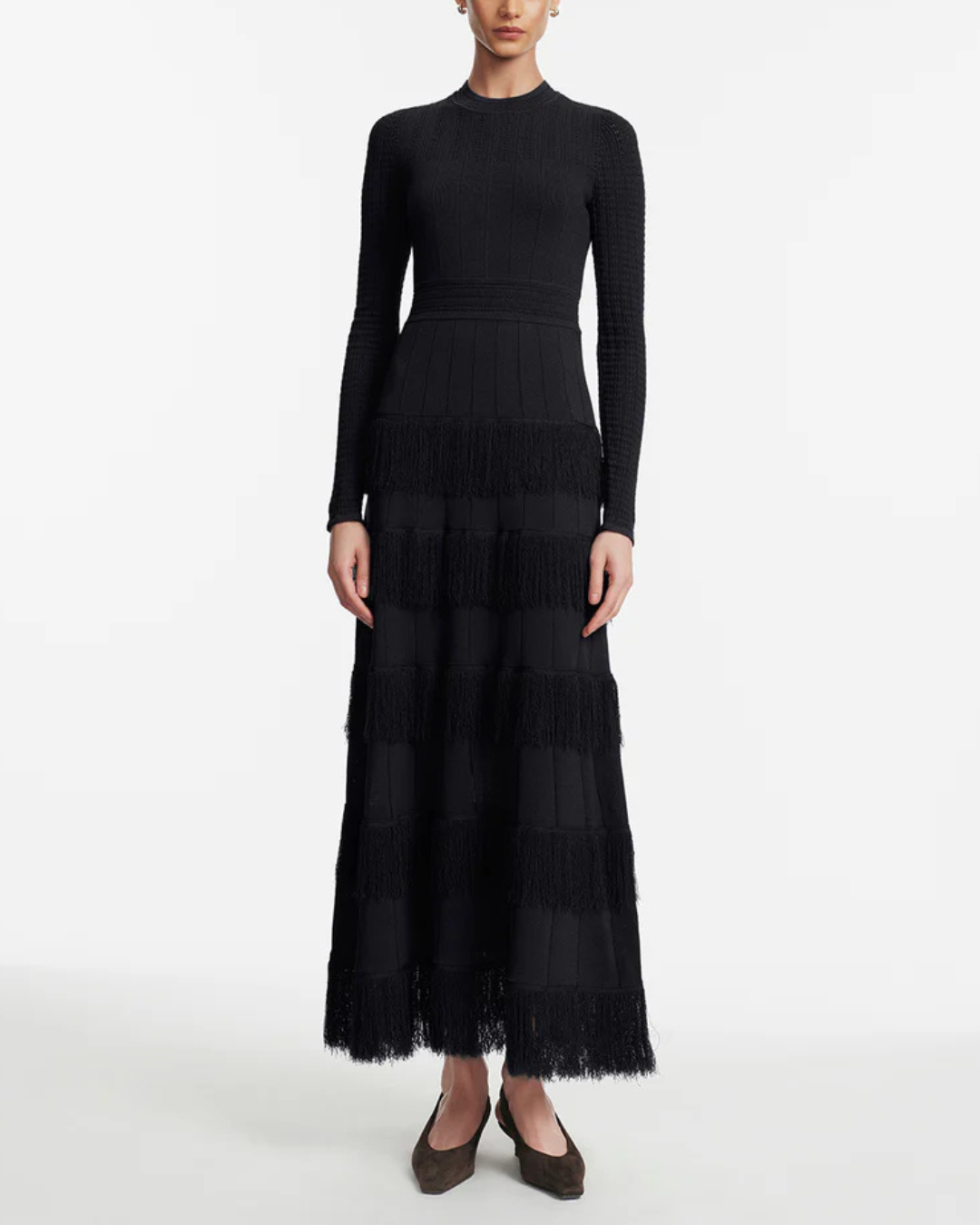 Crafted in a luxe knit fabrication, the Piper Dress features an easy fitted silhouette. A best seller year after year, this season's take on our classic knit dress features tiers of movement-forward fringe details and subtle openwork patterns inset into the knit. Effortless day-to-dinner defined.