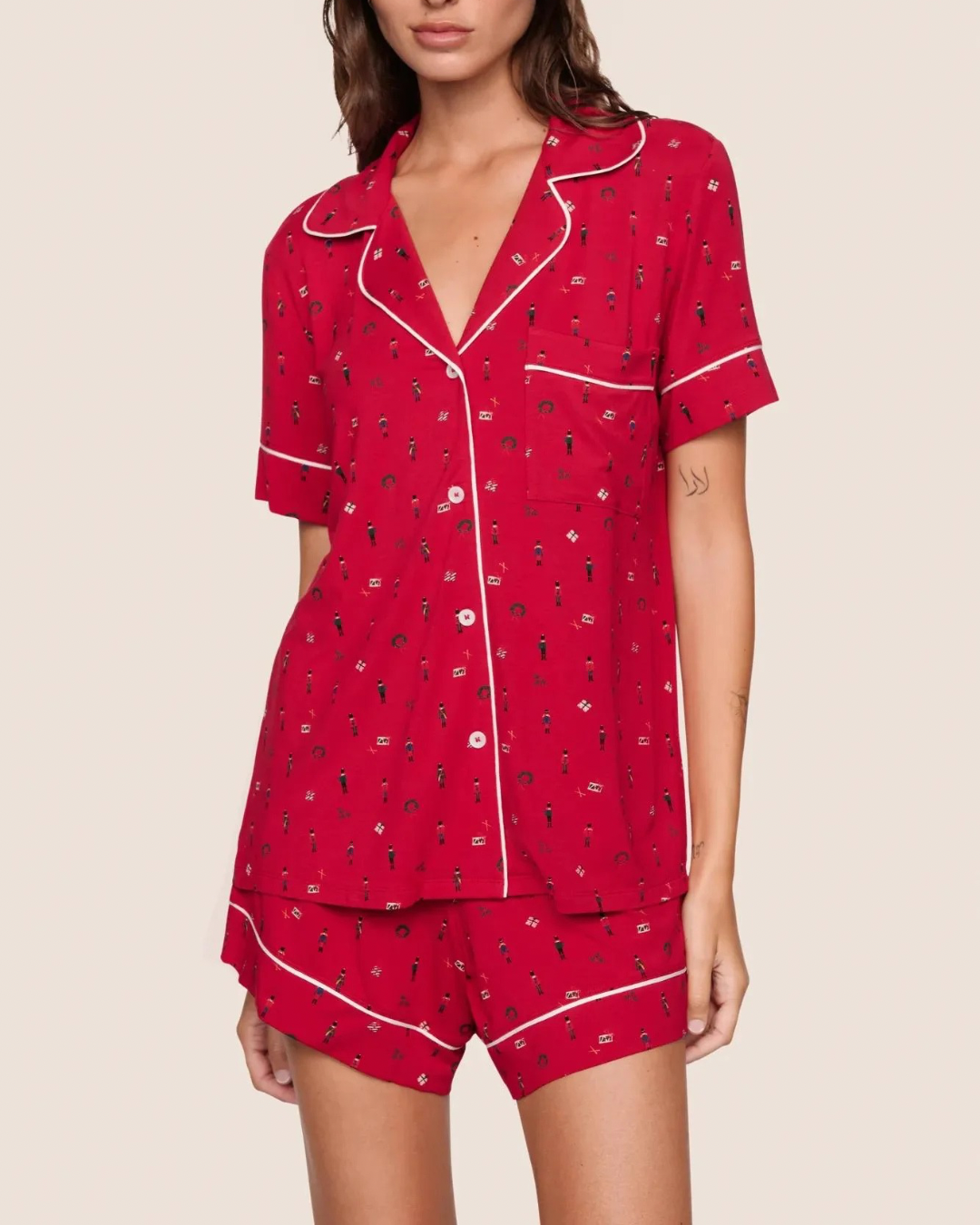 The PJ that started it all. Made from TENCEL™ Modal fibers and a touch of elastane, this buttery soft fabric is verified by OEKO-TEX® Standard 100, meaning it’s dyed with safe and non-toxic dyes. This relaxed set has a roomy shape, extra coverage, and a comfortable fit that you can wear and gift with confidence. The short sleeve top features a loose fit, button front, notch collar, and functional pocket, paired with relaxed shorts for ease and comfort. Pairs well with our everyday lingerie and blissful ZZZ’s.