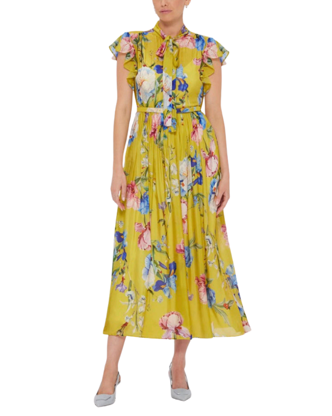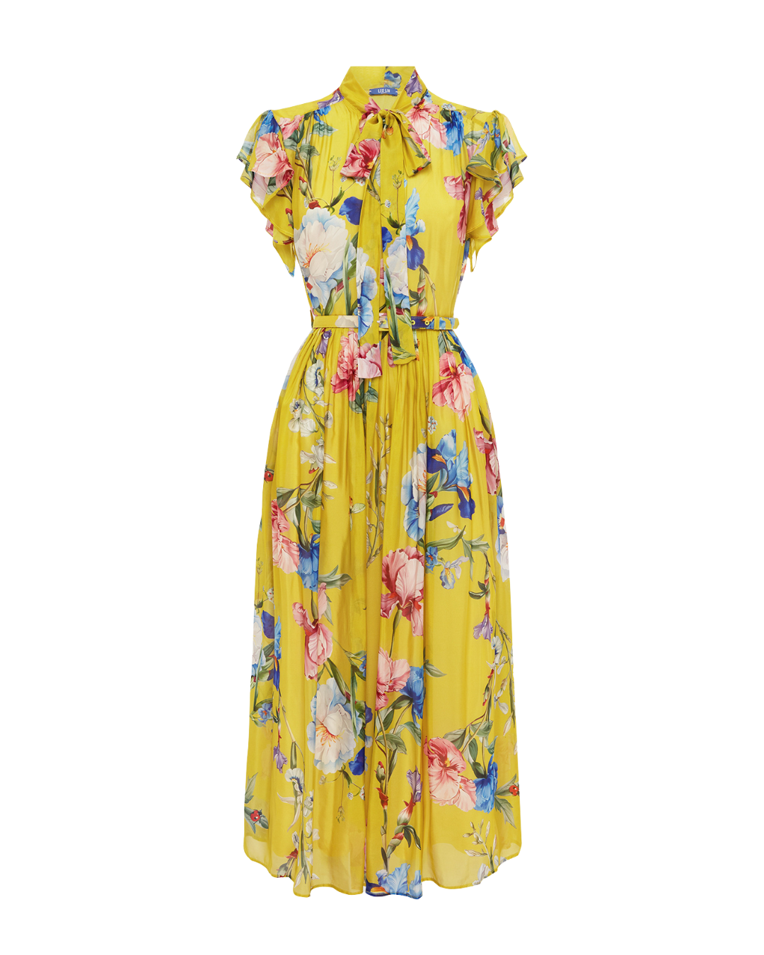 Blush azaleas dance on a yellow canvas, with delicate blue accents adding a little extra whimsy to our signature floral print.