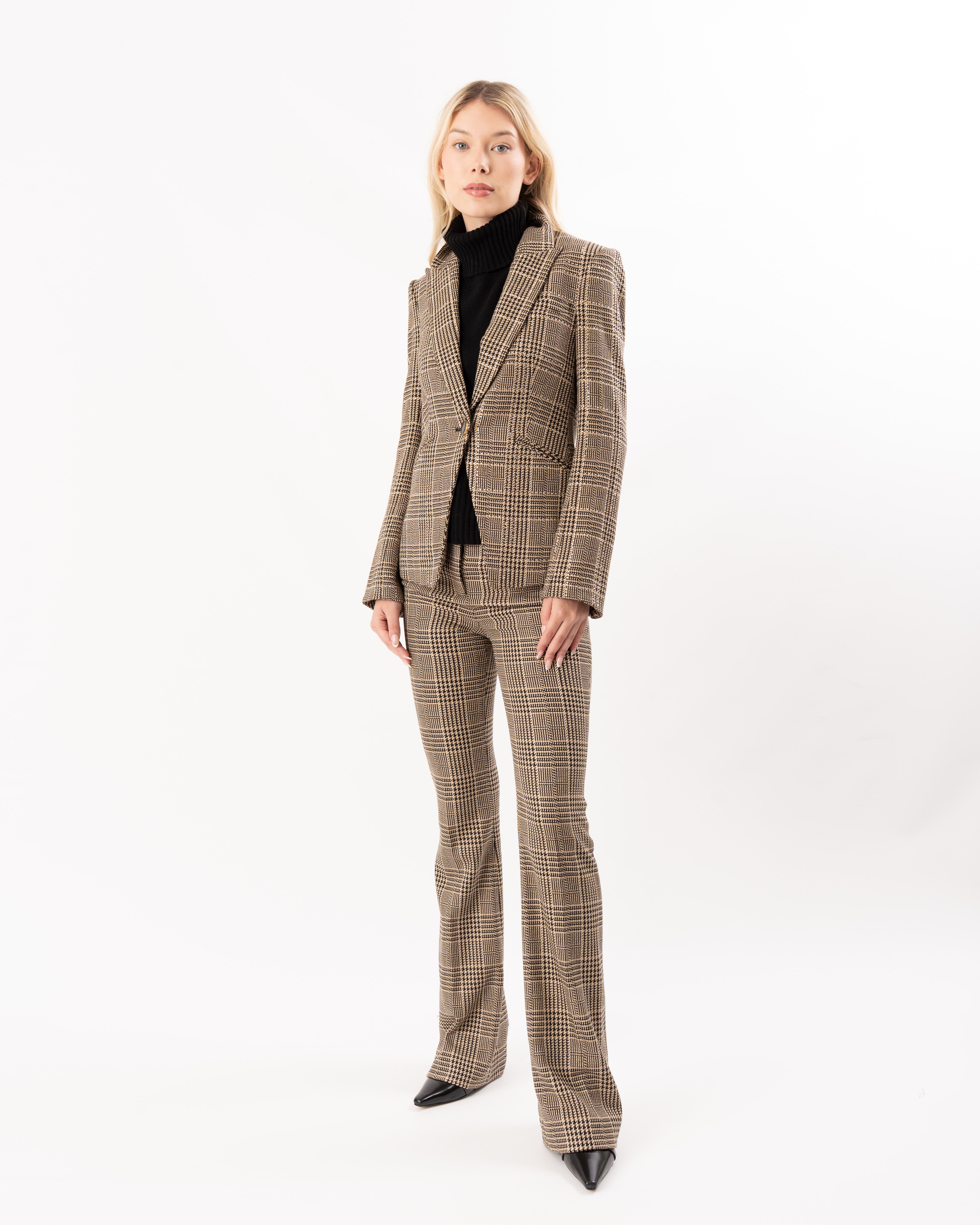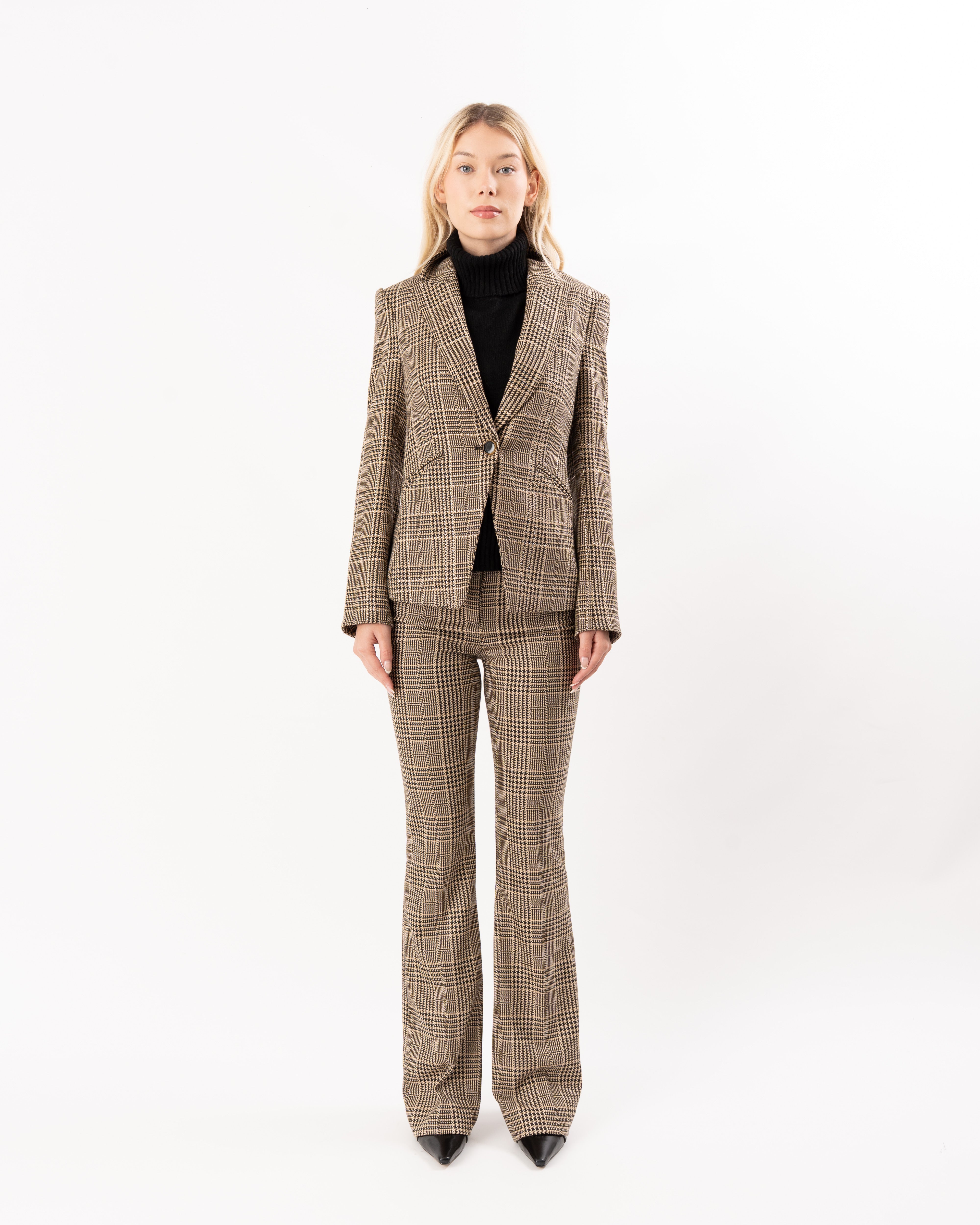 Crafted from a premium tailoring blend, the high-waisted Gracie is defined by a slim leg that falls into a subtle flare. Pair with a simple black sweater to elevate the everyday, or wear these houndstooth pants with the matching Rhys dickey jacket for a polished pantsuit.