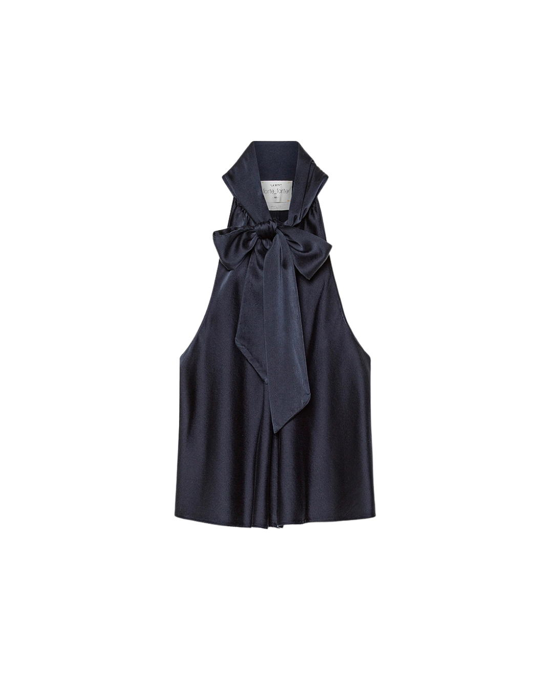 HEAVY STRETCH SILK SATIN BOW-TIE TOP