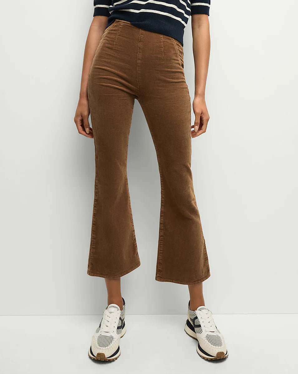 The Carson jeans you know and love—now in cool corduroy. Made from super-stretch cotton, this VB favorite features a high-rise, kick-flare silhouette. It's also waistband free, for easy pull-on appeal. The clean front of these corduroy flared pants ensures a smooth look while the slightly cropped length suits sneakers and heels alike.