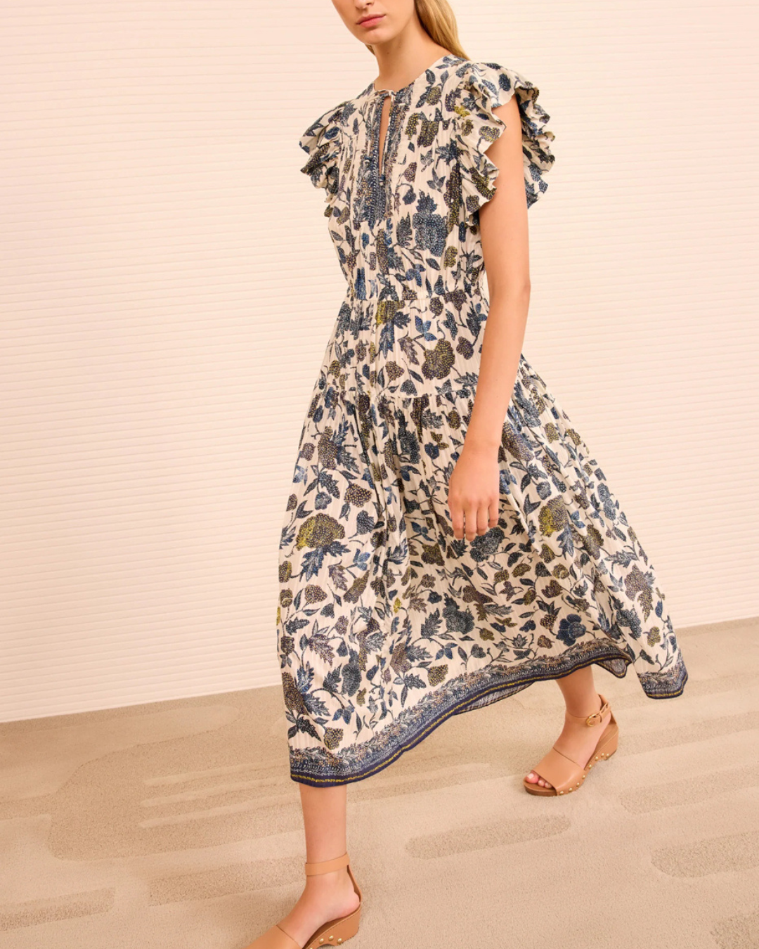 KAIRI FLUTTER SLEEVE MIDI DRESS