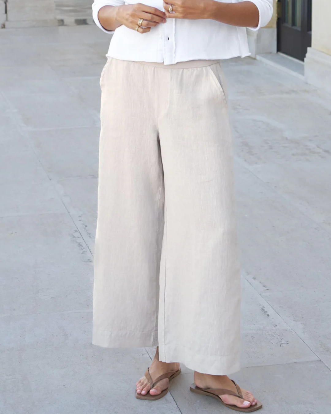 The Maisie pant captures the effortless ease of a chic European holiday. Its soft texture and pull-on silhouette (with pockets!) pairs everyday comfort with unfussy elegance—perfect for exploring.