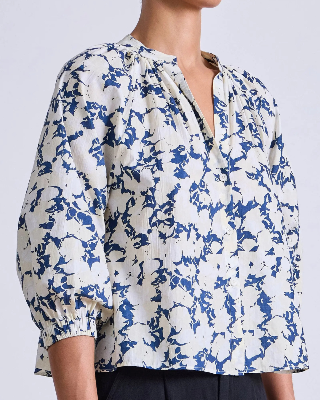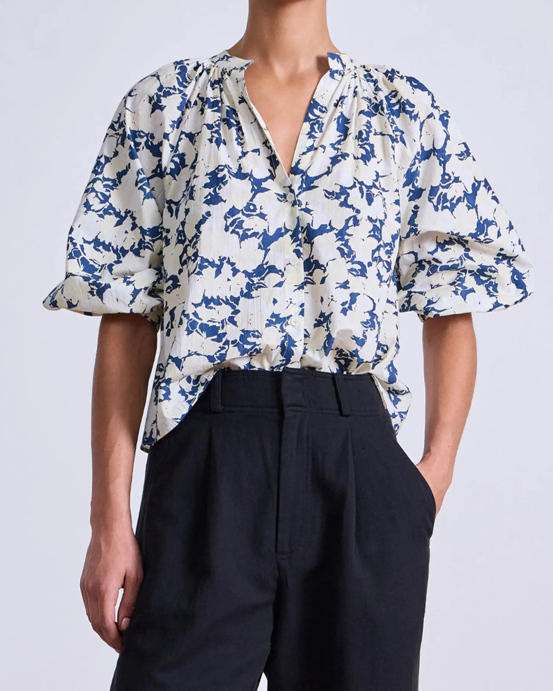 This effortlessly chic piece features front button closures, raglan sleeves with a subtle puff, and a clean straight silhouette. Designed for everyday ease and polish, it fits true to size — simply select your usual size