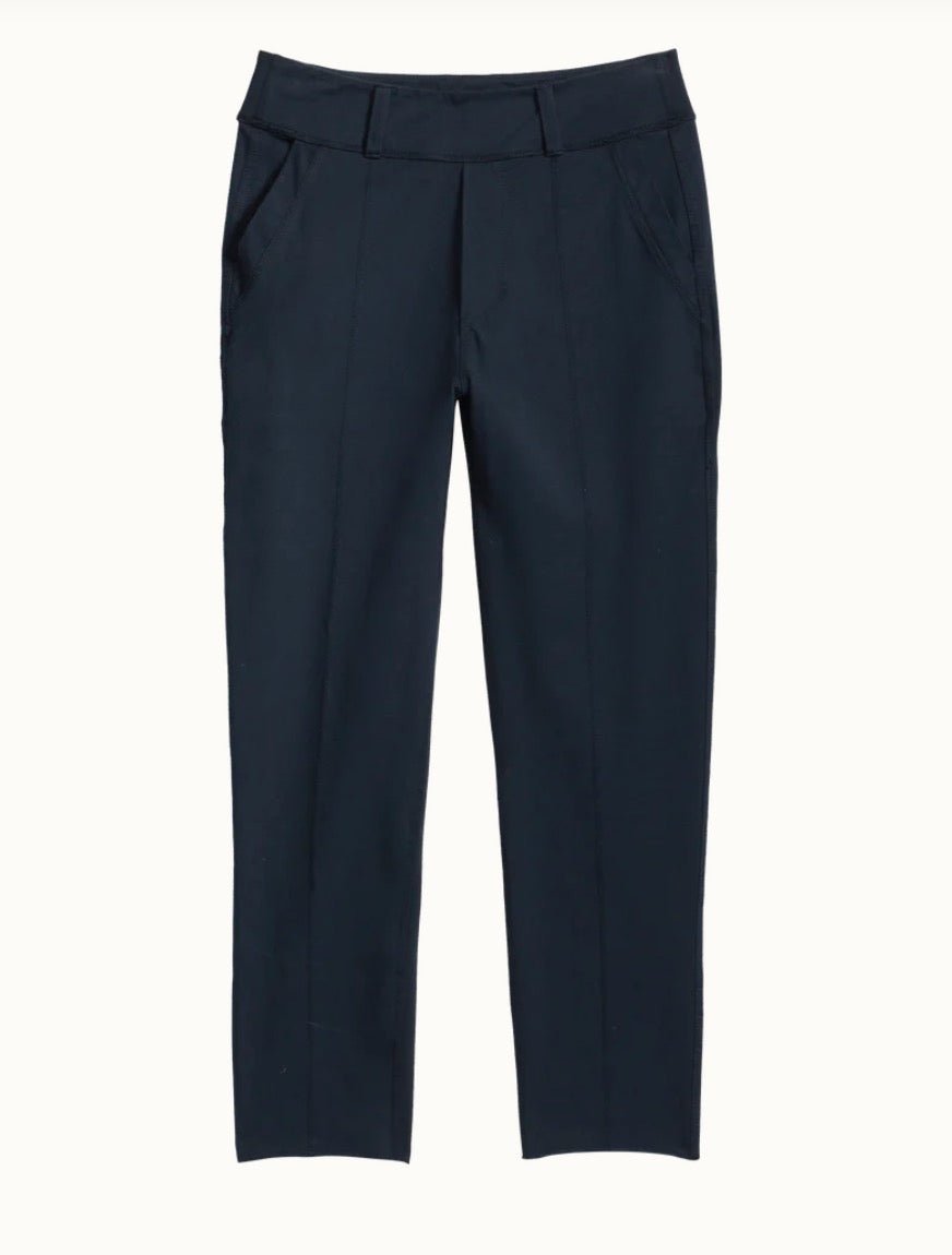 Structured-look, stretchy-feel pant with a cropped hem and mid-rise waist