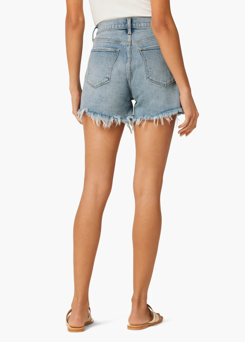 With a high rise and relaxed fit, the Alex is perfectly distressed, delivering a vintage aesthetic. The 'Unbothered' wash is a medium shade with local hand sanding and frayed hems. With a dark contrast on the coin pocket and a slouchy silhouette, the Alex shorts will be a staple for seasons to come.