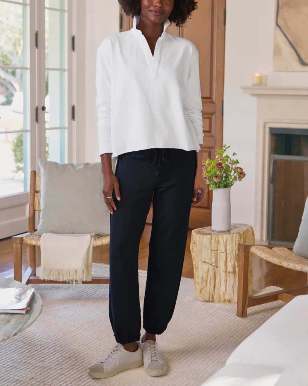 Sophie is our cozy-chic take on the classic jogger sweatpant with a clean, more tailored silhouette that flatters your shape. Our signature raw side seams and handy back pockets add practicality and that casual edge you know and love.