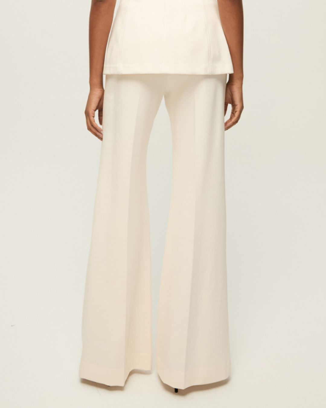 The ponte pant, perfected. Crafted from a smooth, stretch-viscose knit in black, the Kalinda features a super-wide-leg silhouette with a high, three-inch-wide waistband for a sleek, flattering fit. A pressed front crease adds polish and structure, while the invisible back zipper closure ensures a clean finish. Combining the ease of a pull-on pant with the refinement of tailoring, dress it up for work or down for the weekend.
