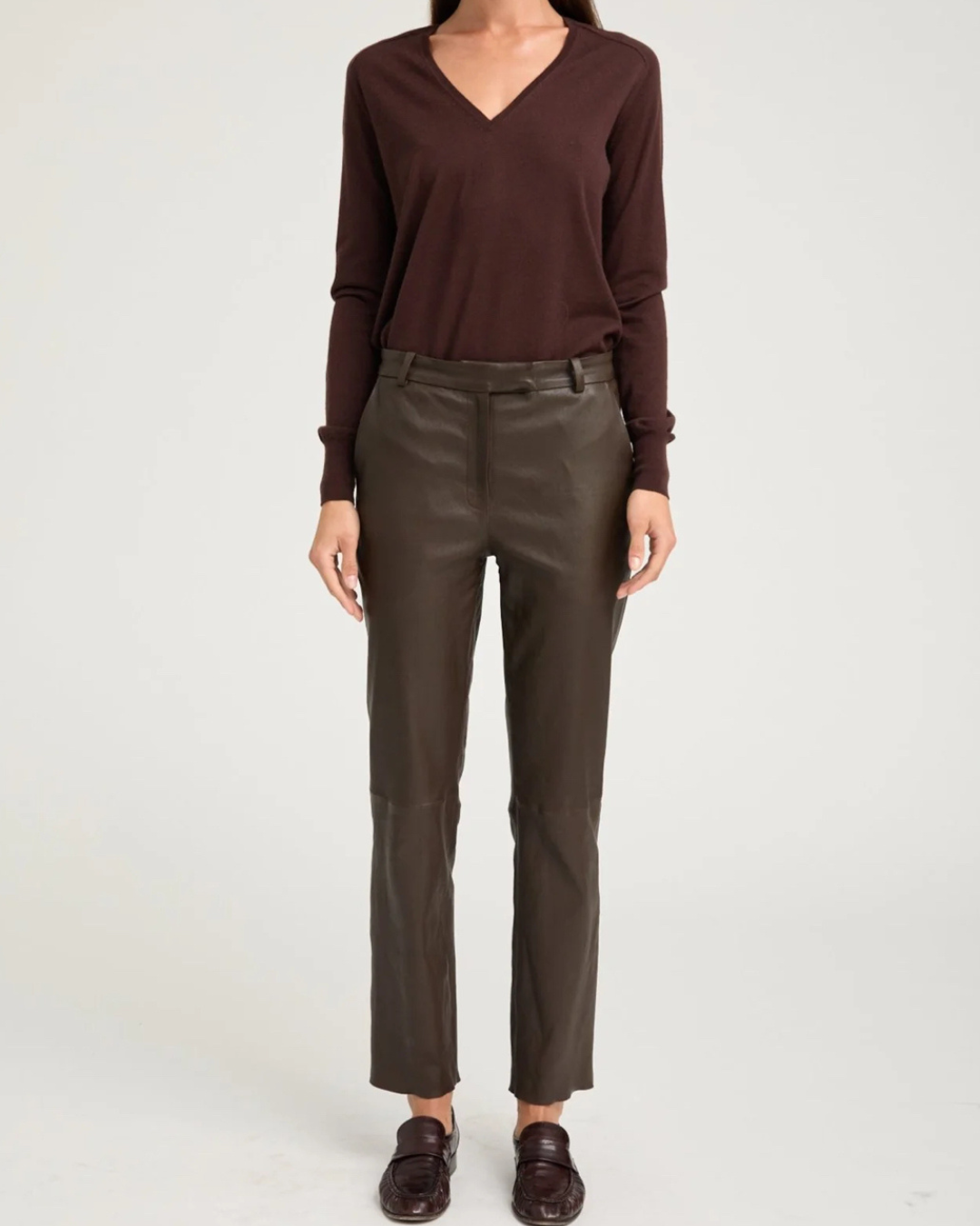A luxurious take on a classic cigarette pant, made in our signature stretch-leather for an effortlessly chic and wearable look. Featuring five functional pockets, belt loops and an ultra-sleek fit, these pants strike the perfect balance of modern and edgy. With a wide range of styling options, these pair well with heeled boots or sneakers, a cashmere sweater or a leather top.