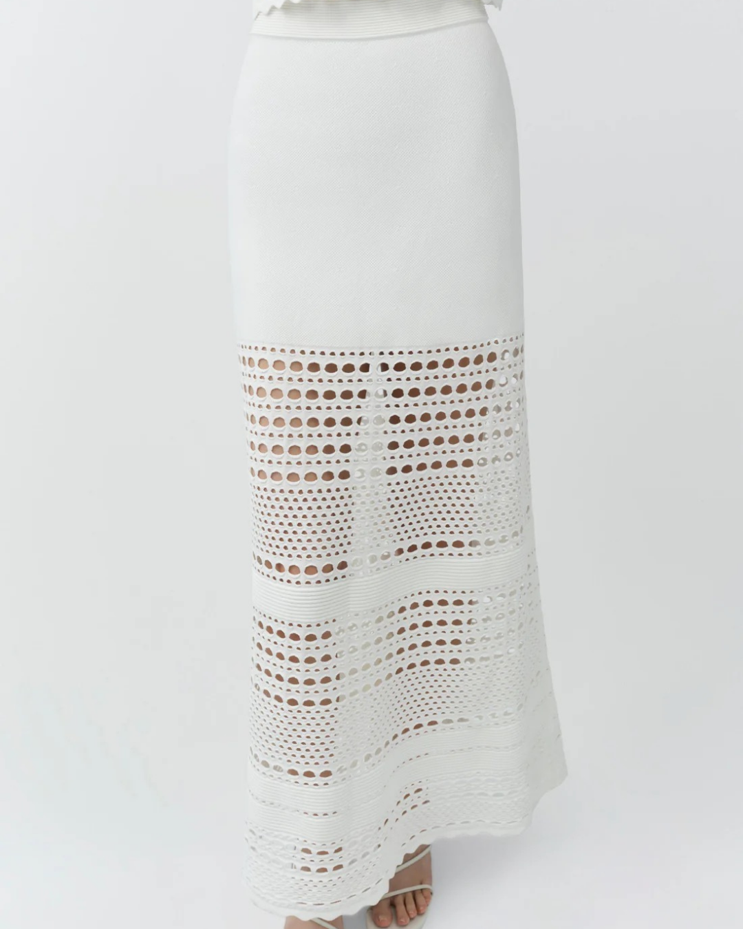 WESTLY OPEN STITCH KNIT MIDI SKIRT