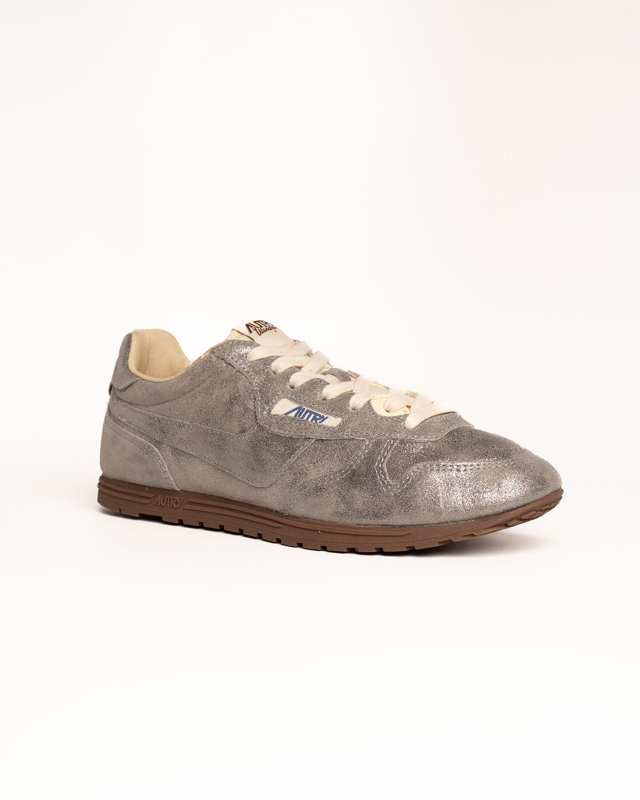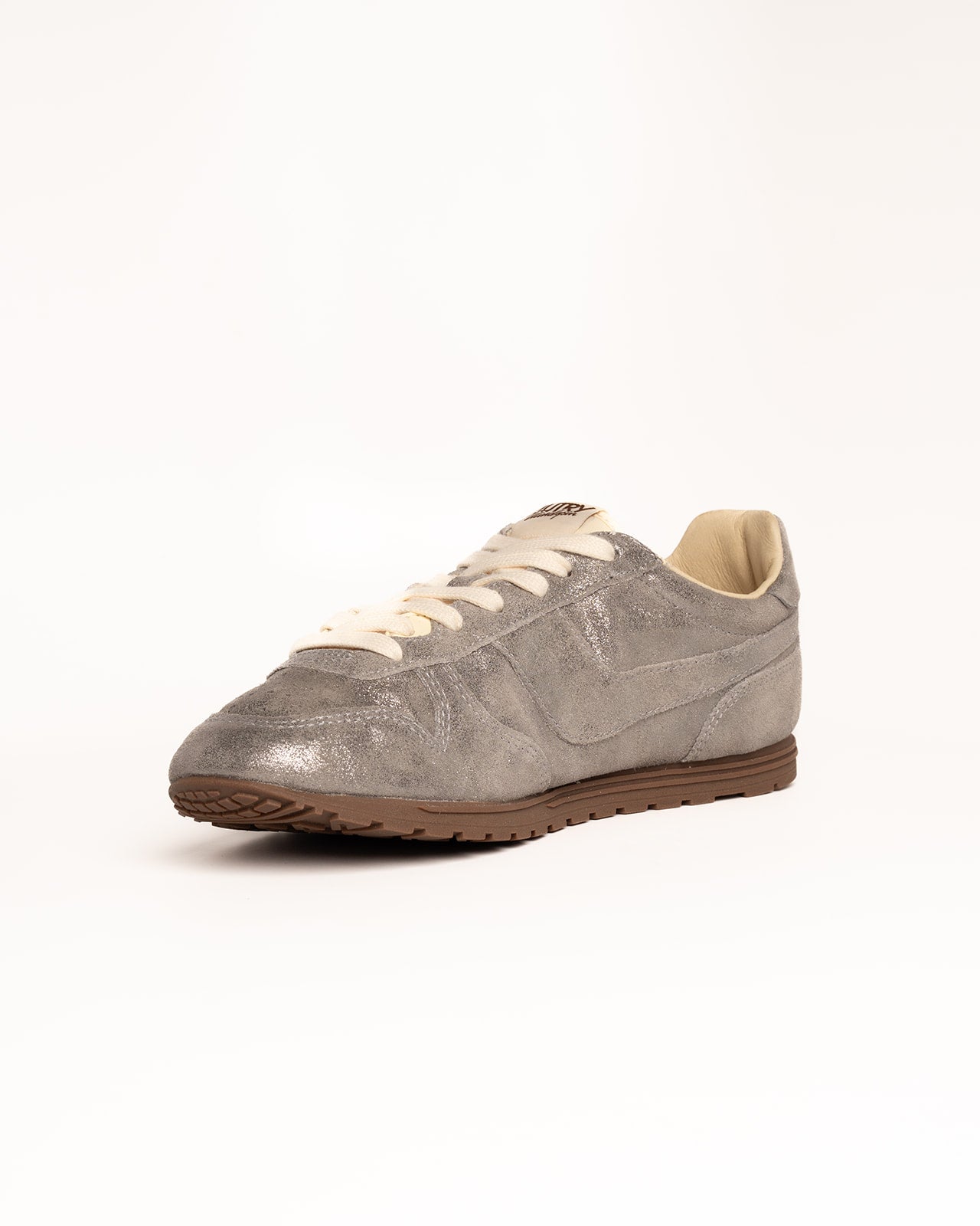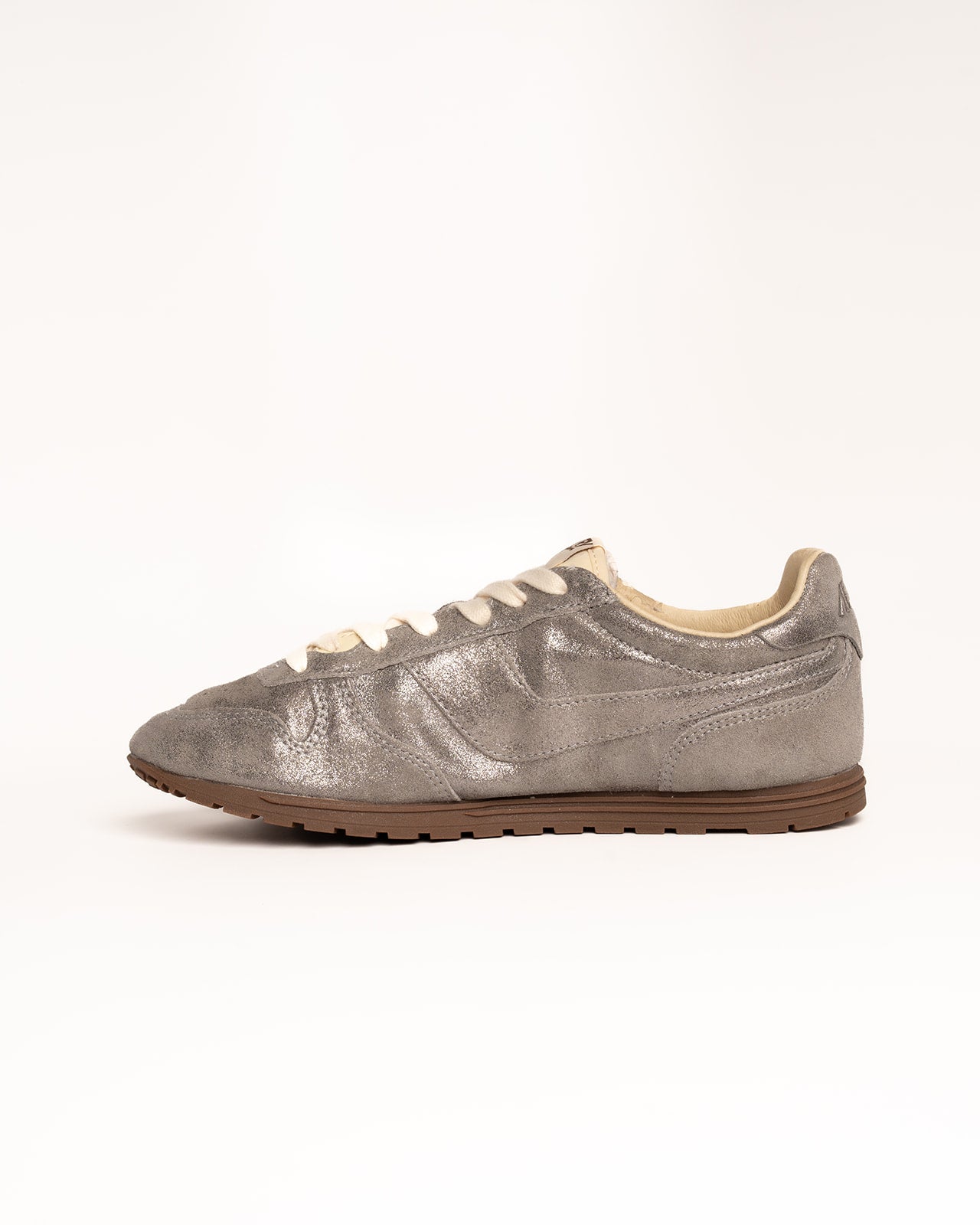 The Windspin features a tapered silhouette and flat sole with a soft and distressed suede upper, lending to the collection's relaxed theme.
