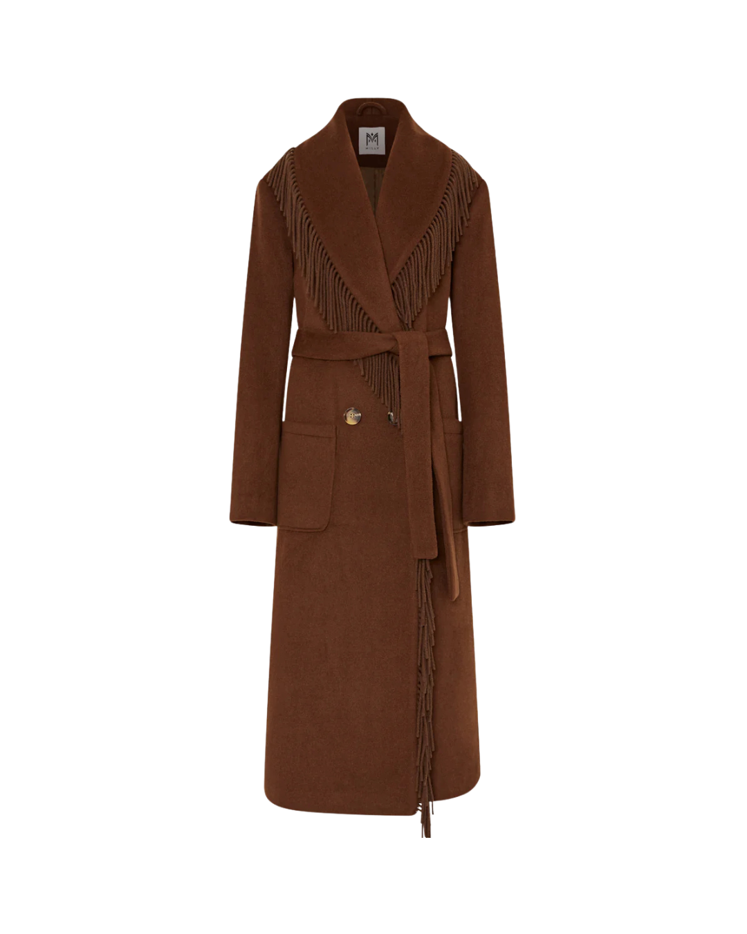 Cut from a gorgeous wool fabric, this maxi length coat is elevated by dramatic shawl lapels that come with fringe detail. Layer it over your favorite MILLY looks all season long.